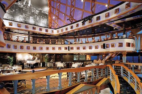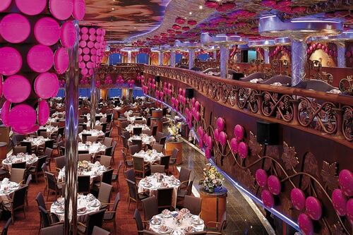 Ступая на палубу Carnival Miracle, вы делаете шаг в другой мир. Мир, наполненный невероятными фантазиями и сказочными персонажами. Иная реальность начинает окутывать вас, где бы вы не находились. В главном театральном зале судна, Phantom Lounge, названном так в честь знаменитой Phantom of the Opera, стены украшены изображениями фантома и масками с горящими красным глазами. Этот зал занимает в высоту три палубы и вмещает 1160 гостей. На протяжении всего спектакля в зале работают официанты, у которых можно заказать еду и напитки. Но лучше дождитесь окончания представления и отправляйтесь на ужин в главный ресторан лайнера - Bacchus dining room. Этот огромный двухуровневый ресторан вмещает одновременно 1300 гостей и декорирован стилизованными виноградными лозами и гроздьями. Время обеда и ужина можно выбрать самостоятельно. Выпить кофе или чай лучше всего, опустившись на несколько палуб вниз, в ресторане Horatio's - именно там сервируются лучшие десерты в мире. Ну и в заключение предлагаем вам насладиться прохладительными напитками у бассейнов Улисса и Сирен в очаровательном Odyssey Bar, который расположен на этой же палубе.