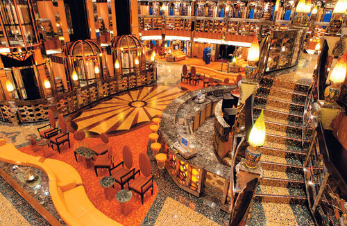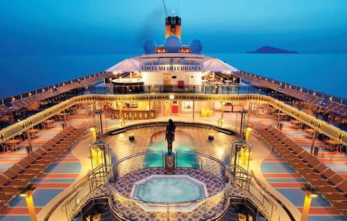 Costa Mediterranea это по-настоящему колоритный и яркий лайнер, на котором атмосфера веселья встречает сразу же, как только Вы зайдёте центральный атриум со стеклянными лифтами и скульптурами танцовщиц, а прямо над головой – стеклянная крыша и небо.