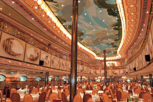 Всего на лайнере 4 ресторана и 12 баров. Вас по-настоящему впечатлит ресторан «Argentieri» своим балконом и 139 дизайнерскими произведениями искусства из серебра. Этот ресторан предлагает разнообразное меню и изысканные блюда, а буфет «Perla del Lago Buffet» работает по системе «шведский стол». К альтернативным ресторанам относятся двухуровневый «Club Medusa» и шикарный «Wellness Restaurant».