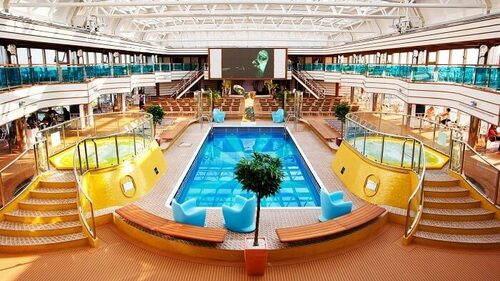 Среди развлечений Вы встретите театр, казино, библиотеку и ночной клуб. На борту есть много магазинов, в которых Вы можете приобрести одежду, косметику и украшения известных брендов, товары повседневного пользования и сувениры.