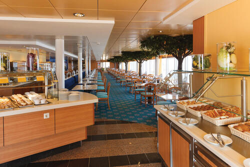 Так же на всех лайнерах «neoколлекции» особое отношение к еде. Есть 3 ресторана, пиццерия и гриль-буфет. Вам не нужно выбирать смену питания, так как Вы можете посещать ресторан в любое удобное время. Меню формируется с учётом посещения портов и Вам предложат традиционные блюда той страны, в которой останавливается лайнер. Вечером можете посетить один из 6 баров, которые располагают отличной атмосферой для встреч с друзьями.
