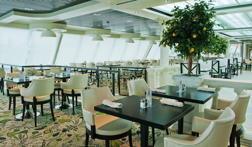 На борту 4 ресторана, 6 баров и особое отношение к еде. Здесь Вам не нужно выбирать смену питания, так как Вы можете посещать ресторан в любое удобное для Вас время, а меню формируется с учетом посещения портов. Таким образом, Вы сможете попробовать блюда национальных кухонь.