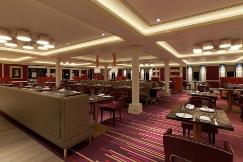 Il Meneghino. На палубе №6 есть еще один просторный обеденный зал, оформленный в стиле арт-деко со смелыми цветовыми решениями. Благородные оттенки коричневого, фиолетового и красного настроят вас на вечернее настроение и дополнят ужин.