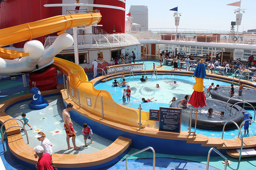 На Disney Wonder имеется несколько бассейнов, в том числе для детей до 5 лет, джакузи и отдельный бассейн только для взрослых. Огромные возможности на лайнере предлагаются для любителей спорта и активного отдыха - в комплексе Wide World of Sports находятся волейбольная и баскетбольная площадки, футбольное поле, дорожка для пробежки или спортивной ходьбы, столы для пинг-понга, а также всевозможный спортивный инвентарь.