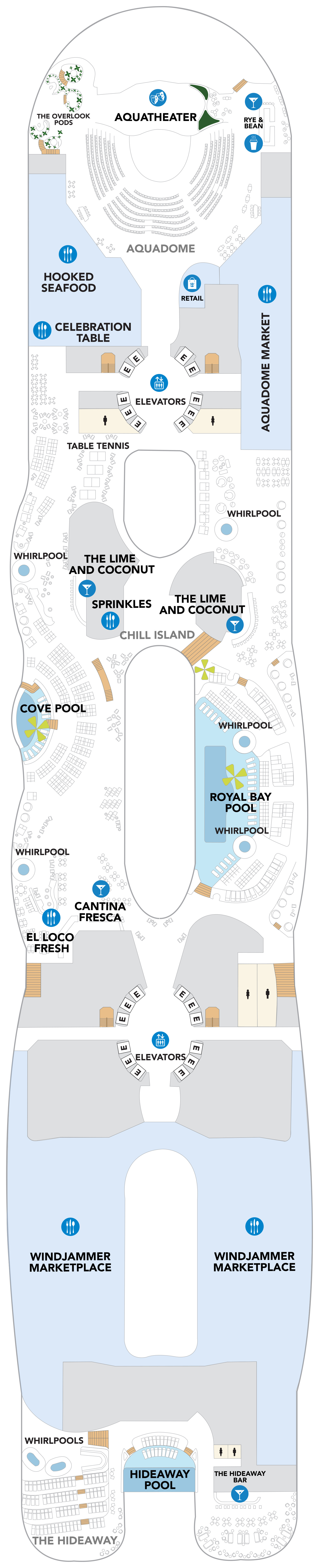 Семь солнечных бассейнов и десять джакузи на Legend of the SeasSM создают оазис для любого настроения. Играйте целый день в Royal BaySM, самом большом бассейне в море, или проведите больше времени с семьей в бассейне Water’s Edge в SurfsideSM. Наслаждайтесь потрясающими видами из подвесного бесконечного бассейна Hideaway только для взрослых, возьмите тропический коктейль в Swim & TonicSM. Независимо от того, как Вы любите расслабляться, Ваша эра релаксации только начинается.