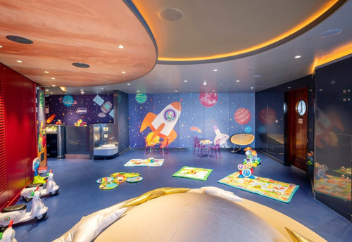 На лайнере есть детский клуб Doremi, расположенный на палубе №16. Он занимает площадь 700 квадратных метров и приглашает детей всех возрастов от 12 месяцев до 17 лет. Пространство оформлено в космической тематике и включает в себя собственный кинотеатр, зону видеоигр, видеостудию и т.д.