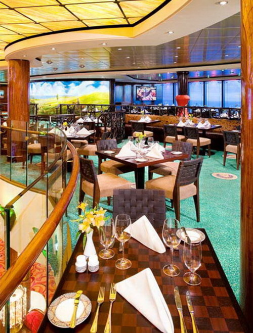 Питание на лайнере организовано по системе «Все включено» (за исключением напитков). Все рестораны для ужина открыты с 17:30 до 22:00 и вы можете прийти в ресторан в любое удобное для вас время из этого промежутка. Как мимнимум один ресторан на борту работает 24 часа. На борту работает система доставки еды в каюту 24 часа (но с 00:00 до 05:00 взимается дополнительная плата за услугу).