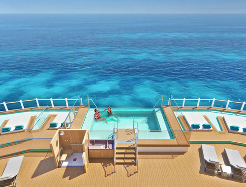На борту лайнера 5 бассейнов и 9 джакузи.