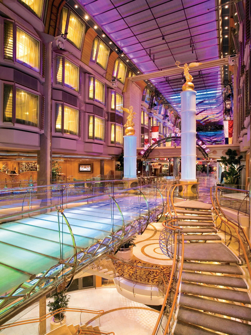 Вечірки та заходи на Королівському Променаді Royal Promenade – справжньому бульварі під скляним куполом з бутіками та кафетеріями та в семиповерховому атріумі Centrum (Центральному холі) зі скляними ліфтами, що піднімають гостей до найвищої точки лайнера - Viking Cr. ), в якому можна насолодитися панорамним видом.