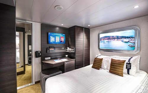 Примітка: схема каюти, площа, кількість спальних місць, меблювання та дизайн інтер’єрів, конструктивні особливості можуть відрізнятися від представлених на фотографії (навіть серед кают однієї категорії).