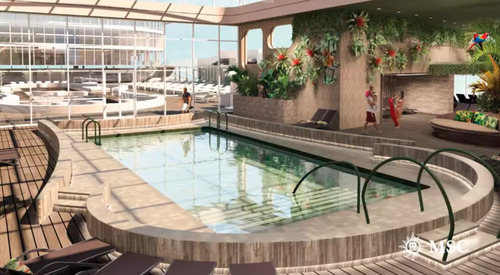 Басейни. Всього на борту лайнера MSC World Europa розміщено 6 басейнів та 14 джакузі. У розпорядженні пасажирів як криті, так і відкриті басейни із зонами відпочинку на шезлонгах. Головні басейни знаходяться на палубі №18 у носовій та хвостовій частинах корабля. Окрім загальнодоступних басейнів, на лайнері передбачені зони ексклюзивного водного відпочинку для гостей MSC Yacht Club.