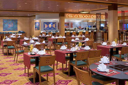 Харчування на лайнері організовано за системою «Все включено» (за винятком напоїв). Усі ресторани для вечері відкриті з 17:30 до 22:00 і ви можете прийти до ресторану у будь-який зручний для вас час із цього проміжку. Як мінімум один ресторан на борту працює 24 години. На борту працює система доставки їжі до каюти 24 години (але з 00:00 до 05:00 стягується додаткова плата за послугу).