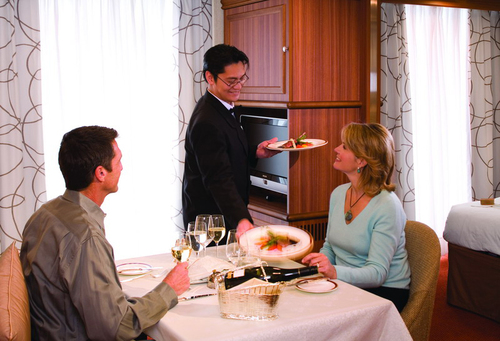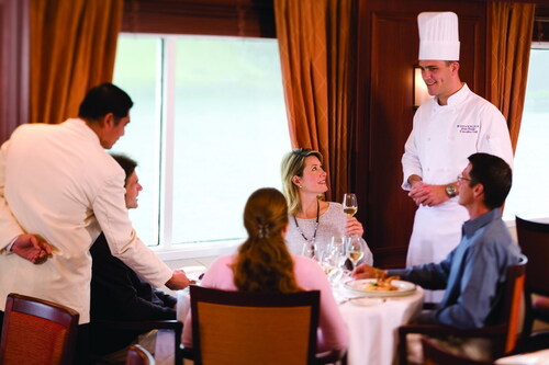 У хорошу погоду обід на лайнері сервірується на відкритій палубі, а капітан маневрує судно так, щоб гості насолодилися найкрасивішими і найцікавішими видами або подіями, наприклад, китами, що пропливають.