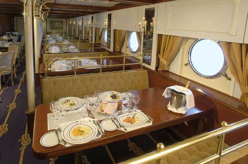 На борту немає позмінного харчування, так що Ви можете вечеряти будь-коли і за будь-яким вільним столом, що сподобався.